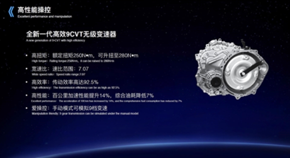 艾瑞泽GX搭载了1.5T+9CV T的动力组合。全系标配1.5T涡轮增压发动机,其最大功率108kw,扭矩峰值210N.m。匹配全新一代9-CVT无极变速器,0- 60km/h加速时间为4.6秒,百公里加速只需9秒。