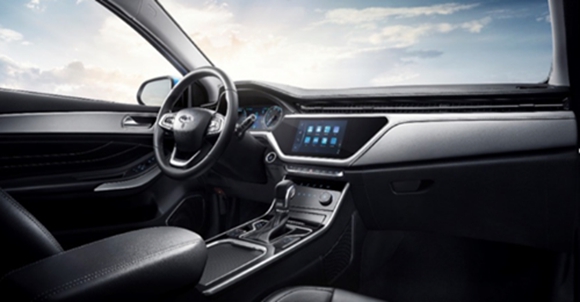 三屏环绕的创造性设计,由7吋多功能液晶仪表、8吋空调液晶触控屏以及9吋电容中控屏构成三屏互联视界,形成了科技、时尚的内饰设计风格。