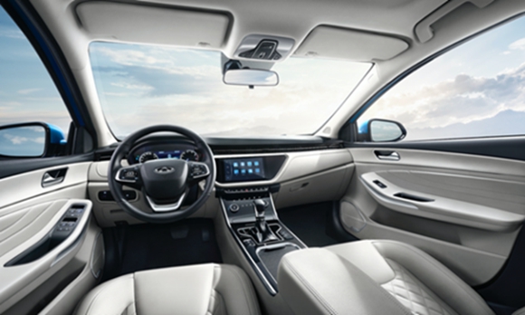 艾瑞泽GX在内饰上,采用了非对称式“未来之翼”悬浮仪表台布局。独特的贯穿式空调出风口,相比传统设计,能更高效混流自然空气,提高汽车空调使用的舒适度。此外,车内还采用大量皮质工艺对整车内饰进行包覆处理,并点缀了镀铬亮条。