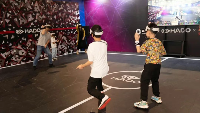 「沉浸次元」运动局——全球首个AR科技体育项目HADO入驻车展现场,观众穿戴上AR眼镜、手持传感设备,就能进入充满未来感的虚拟体育世界。家庭组队,参与虚实结合的能量球对抗赛,在每一次互动中尽享科技带来的运动新魅力。
