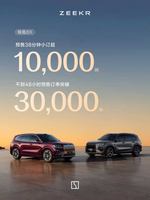 从销售数据来看,总量上,极氪持续创新高,全球累计交付已超过72万辆,今年一月实现翻倍增长,2-3月成为主流新势力唯一连续两个月同环比双增长的品牌,品牌平均客单价超过30万元。结构上,重点旗舰车型持续发力,助力品牌站稳高端豪华市场。极氪9X月交付超过万辆,近5个月在50万以上大型SUV市场占有率达到30%。极氪8X预售火爆,38分钟订单破万,不到48小时订单突破3万,将于4月17日正式上市,被海外媒体评价为:这是一款让BBA真正感到威胁的高性能中国旗舰。极氪猎装家族累计交付超过35万辆,占据全球猎装车市场七成份额。007、007GT于4月10日焕新上市,三天的订单超过去年上市首月一个月的量。据悉,极氪已构建四大核心豪华产品矩阵,分别覆盖不同高端细分市场,形成极致豪华9系、运动豪华8系、科技豪华7系,个性豪华猎装,从极致豪华到个性潮流的完整布局,核心产品全面进入900V时代。