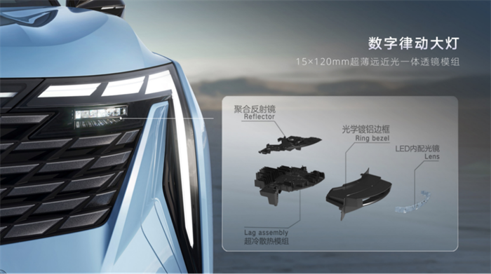 直观呈现“科技感”的造型设计,无疑是博越L的数字律动大灯。由182颗LED发光单元组成的粒子射线灯组,采用首发15×120mm的行业最扁平化“刀锋扁透镜模组”,光照强度可达178LX(勒克斯),远光有效照射距离长达168m,一辆车就能照亮一个足球场。粒子射线灯组与发光logo一起构成了“星际之门”独特造型,形成极高的辨识度,也能与尾灯组在迎宾、欢送、锁车延时等多种特定场景下,演绎兼具观赏性和功能性的“流光灯语”,给予用户更多的尊崇感。