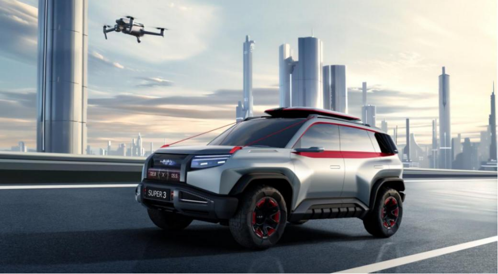 “入目3分”的SUPER 3,是豹3的概念车,基于“星际战车”的灵感,以简洁、夸张、立体的线条创造出雕塑般的金属车身结构,并在干净利落的体态中不断跳脱出颜色鲜明的个性元素,形成张扬的个性表达,是方程豹对于灵动个性的大胆解,更是自由和追求无限翱翔的梦想。