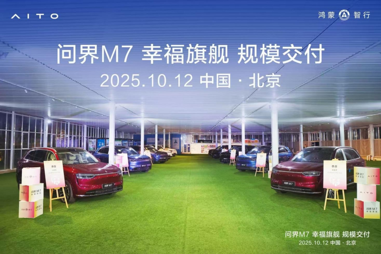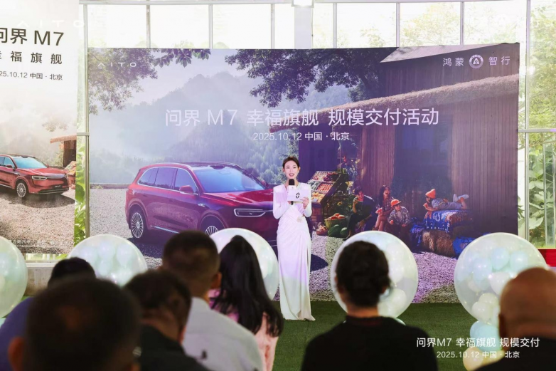 2025年10月12日,问界M7北京规模交付仪式在北京农科院园艺创新中心隆重举行。问界M7北京的新车主们亲临现场,在秋色宜人的京城共同见证了这一重要时刻,标志着问界M7在北京市场的全面启航。
