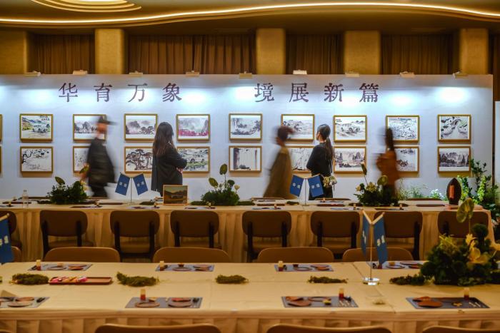 本次品鉴会以豪华体验、无限探索、情感共鸣为核心,从场景布置到环节设计,处处彰显格调与匠心。步入会场,当代中国山水画艺术长廊徐徐展开,山水意境与“华育万象”的主题深度呼应,让到场嘉宾在笔墨风雅中开启品鉴之旅。现场特设精美冷餐、植鞣软木杯垫手作 DIY等雅致环节,让媒体嘉宾在人文与匠心交织的氛围中,沉浸式感受华境 S 的格调与底蕴。