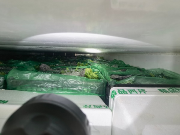 4月11日8时30分,一辆车牌号为辽ACXXXX的货车驶入藁城北站,经司机描述所载货物为芹菜,申请享受“绿色通道”优惠政策,工作人员立即按流程通知值班站长及查验员。经现场查验,车厢外围为鲜活农产品芹菜,车厢中部混装大量苦菊,根据绿通“整车合法装载”相关规定,此车装载鲜活农产品芹菜的同时混装有大量非目录外的鲜活农产品苦菊,且混装比例超过20%,不能享受“绿色通道”优惠政策。