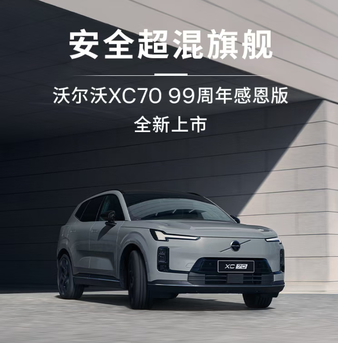 就在此前,沃尔沃汽车在北京隆重举办了99周年品牌庆典,重磅发布三款新车:全新纯电旗舰SUV沃尔沃EX90与全新纯电旗舰轿车沃尔沃ES90,传承沃尔沃百年安全基因,打造集安全、豪华、驾控于一体的全能旗舰,实现入门即满配、入门即豪华、入门即旗舰;全新XC70 99周年感恩版以越级产品力、诚意价格与丰富权益,重新定义25万级豪华插混SUV。目前,全新XC70 99周年感恩版已正式到店,消费者可近距离品鉴。