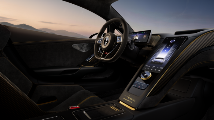 “破晓时刻”车身漆面中融入了微米级超细金粉,经多层清漆层层锁固,不同光线下,漆面会完美复刻朝阳穿透云层的流光溢彩。哑光金部分使用了中国传统非遗大漆的打磨工艺,将东方独有的温润质感,刻入每一寸型面。非遗工艺承载着中国人对顶级审美、极致细节的追求,深耕非遗不是为了简单的设计元素堆砌,而是寻找东方审美技艺与全球30位顶尖藏家的价值共鸣。