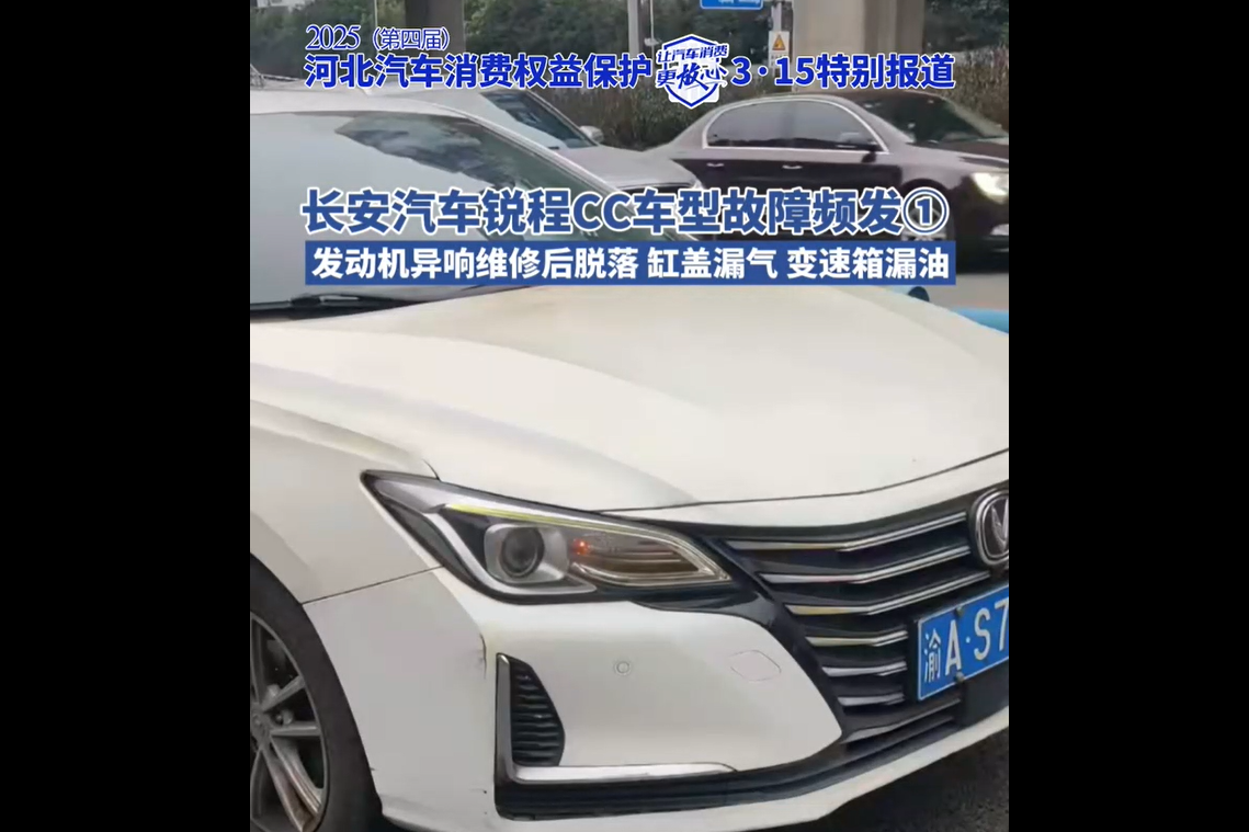 2025(第四届)河北汽车消费权益保护3·15特别报道④长安汽车锐程CC车辆故障频发①发动机异响维修后脱落 缸盖漏气 变速箱漏油