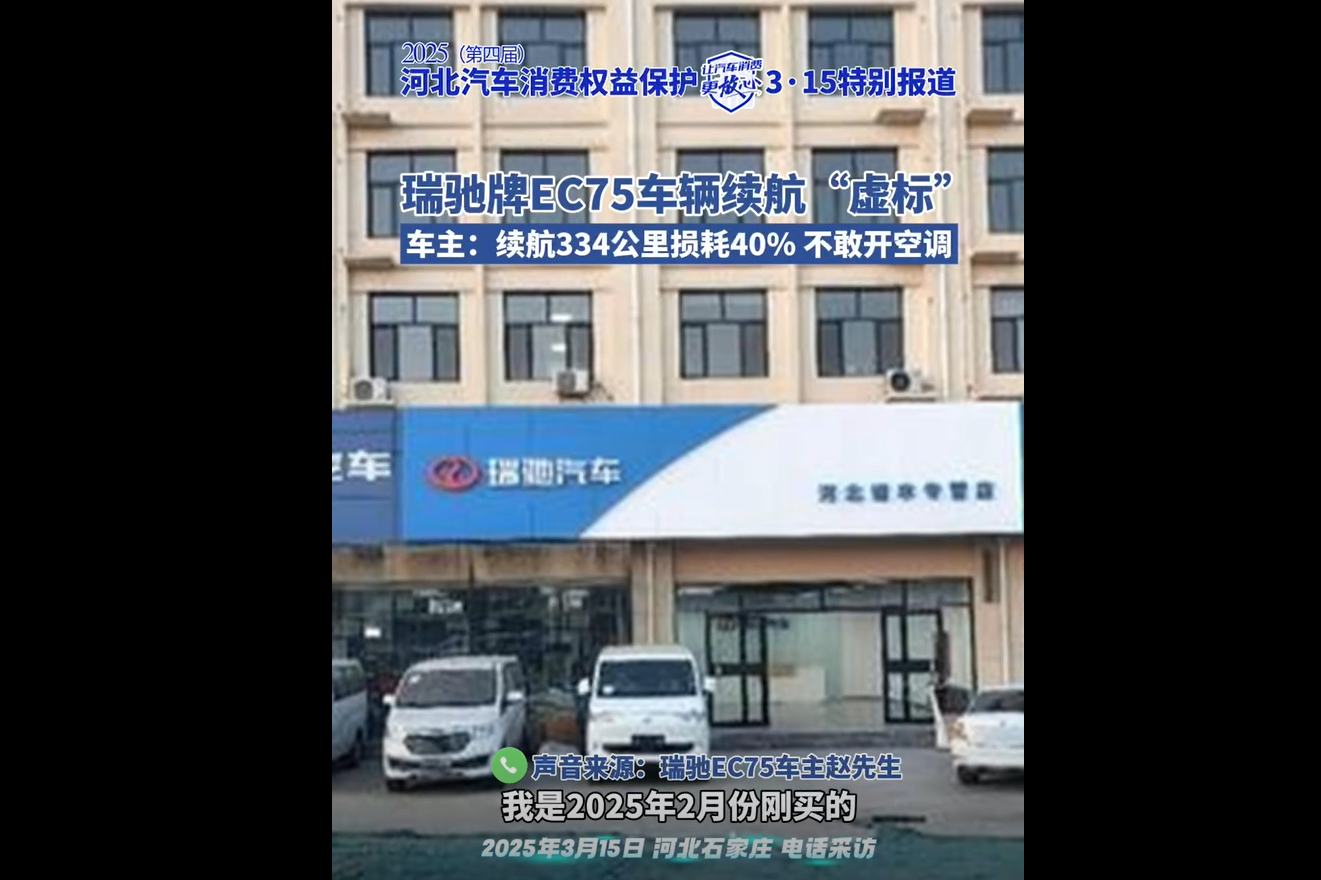 2025(第四届)河北汽车消费权益保护3·15特别报道⑤瑞驰牌EC75车辆续航“虚标”车主:续航334公里损耗40% 不敢开空调